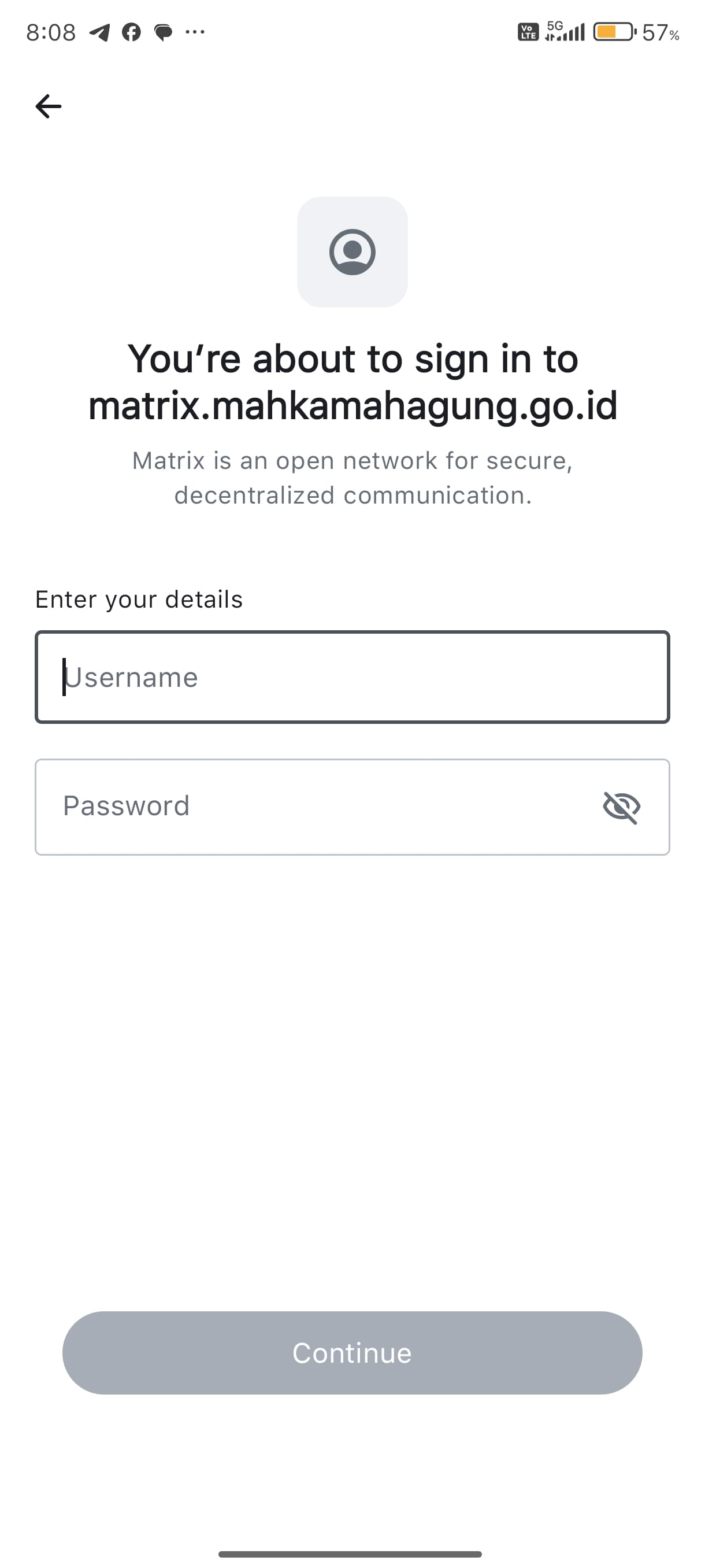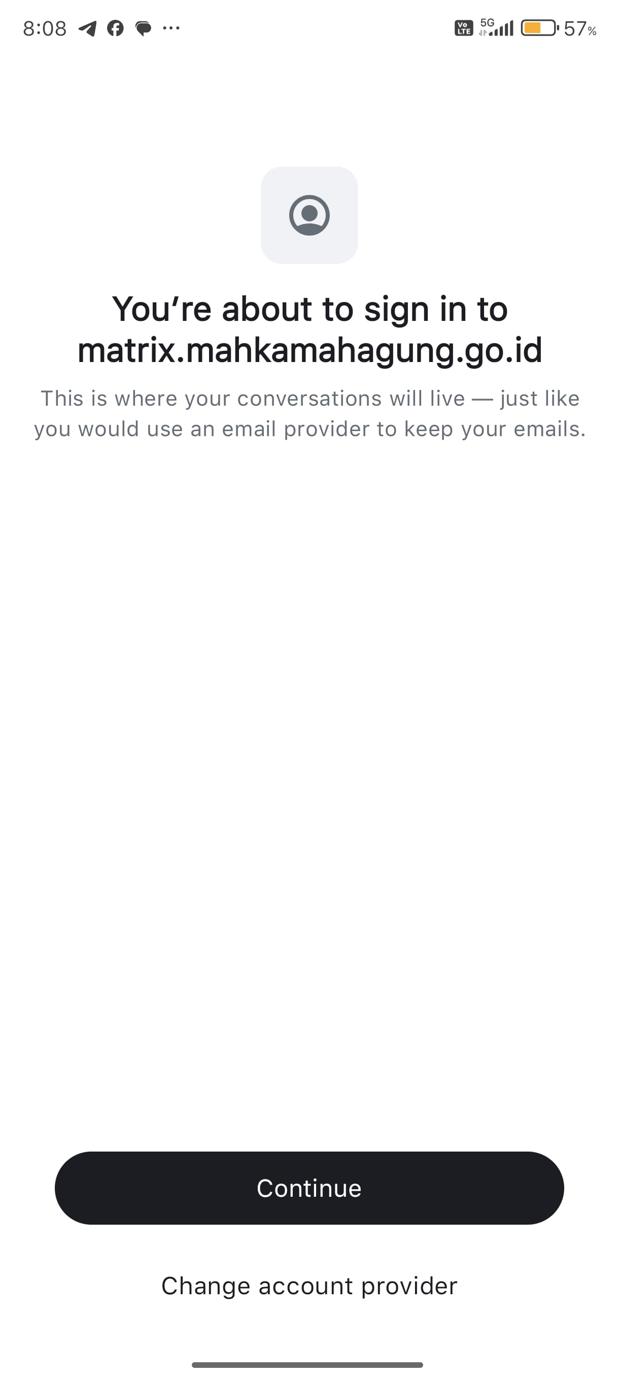 5. Pastikan provider terganti ke matrix.mahkamahagung.go.id, lalu pilih Continue untuk melanjutkan
